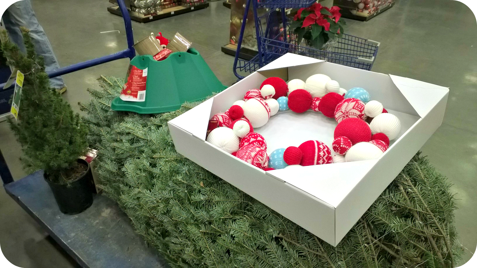 So… we took the obvious hint and finally threw our apparent, last-season pumpkins away (and the weird, ugly, fatty white squash/gourd I felt sorry for and bought out of pure sympathy) and uprooted the purple mums to the backyard and made a mad-dash to Lowes (my new favorite store with my newly acquired nesting-palate) for the Christmas decor starter-kit – for beginners.