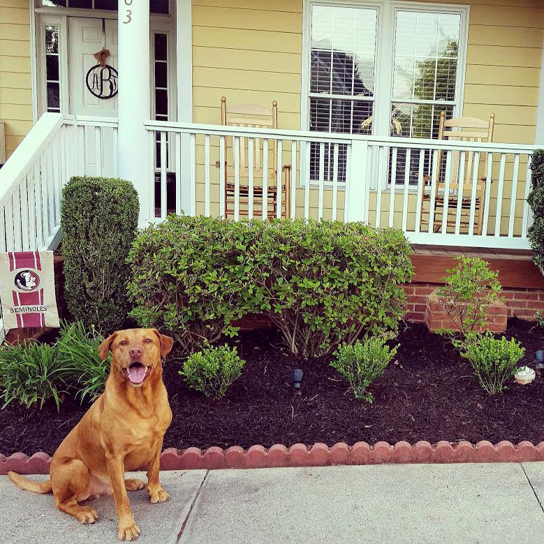 Shamefully, we run the sprinklers at night so the neighbors don’t see our desperate efforts. But last weekend, we made a stride towards yard-betterment until the new sod arrives. We cleaned up the beds – and hauled three unruly, rejected bushes and faded red mulch to the grave.