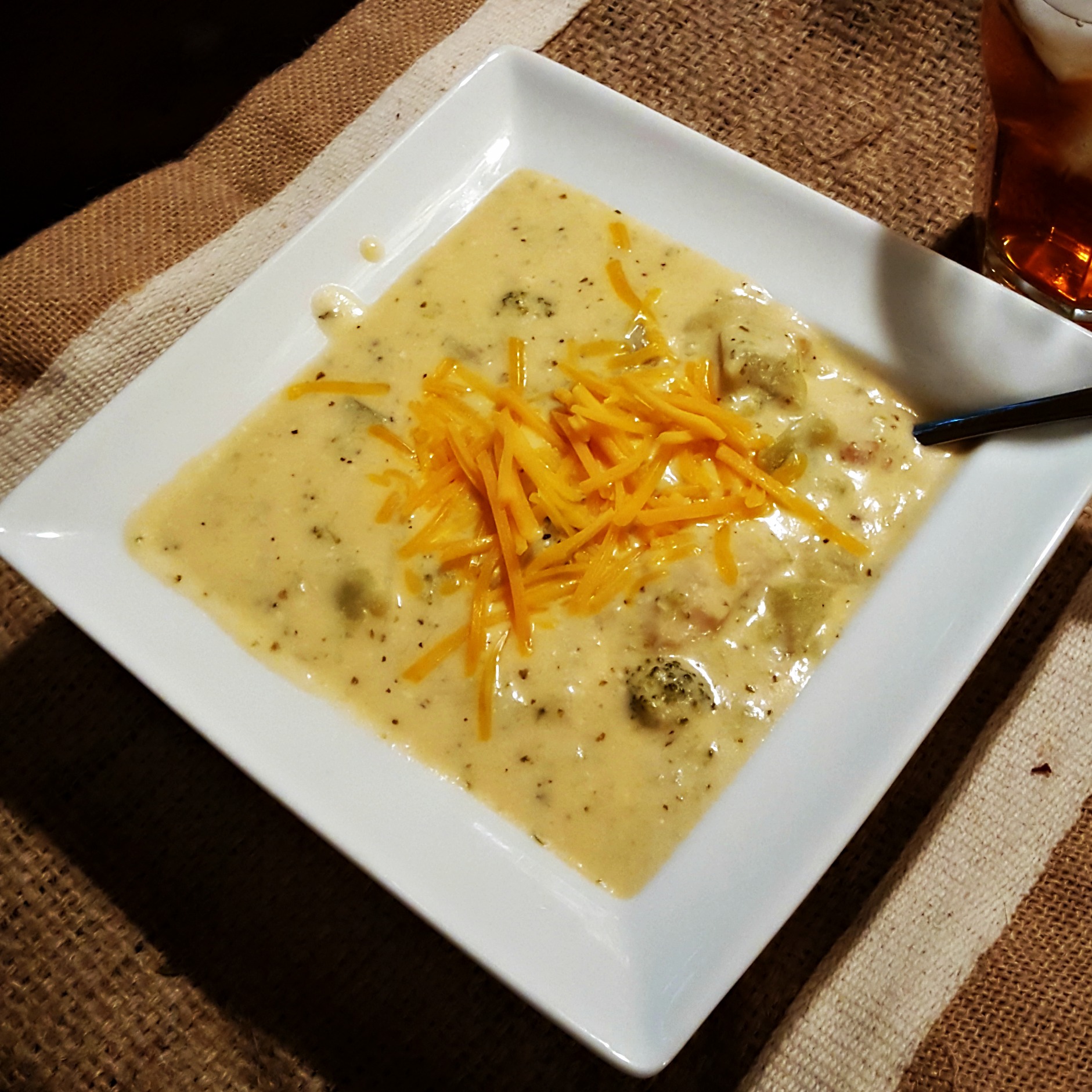 To combat the cold and the grey, we discovered a delicious slow-cooker recipe for broccoli cheese soup. We’re both radiating a little bit of garlic, but we keep coming back for more. To the calorie counters, this is where you stop reading. To those who enjoy the occasional indulgent spree – venture on you wild animals!